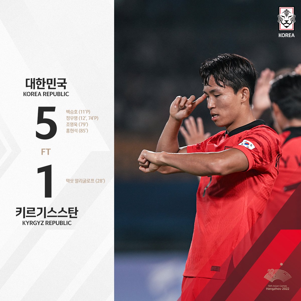 9월 27일(수) 오후 8시 30분 대한민국 5 : 키르키즈스탄 1