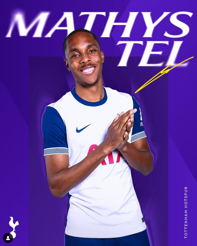 사진출처: spursofficial sns 토트넘 홋스퍼는 2월 4일(한국시간) 공식 홈페이지를 통해 바이에른 뮌헨의 공격수 마티스 텔(19)과 임대 계약을 체결했다고 발표했다. 텔은 2024-25 시즌 남은 기간 동안 토트넘에서 뛰게 되며, 등번호는 11번이다.