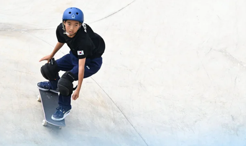 스케이트보드 파크는 45초 동안 총 3번의 시도를 통해 가장 높은 점수로 승자를 가리는 종목으로, 문강호는 공중에서 보드를 360도 회전한 후에 손으로 잡고 타는 '킥플립' 기술이 주특기입니다.
