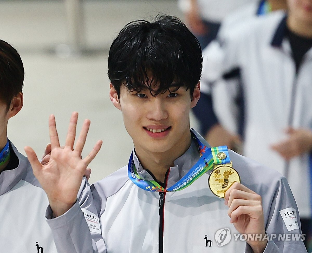 황선우는 18일 현재 3년 연속 4관왕을 확보했습니다. 10월 5일 계영 800m 금메달, 10월 16일 자유형 200m 금메달, 17일 계영 400m 금메달, 18일 자유형 100m 금메달을 확보했습니다.